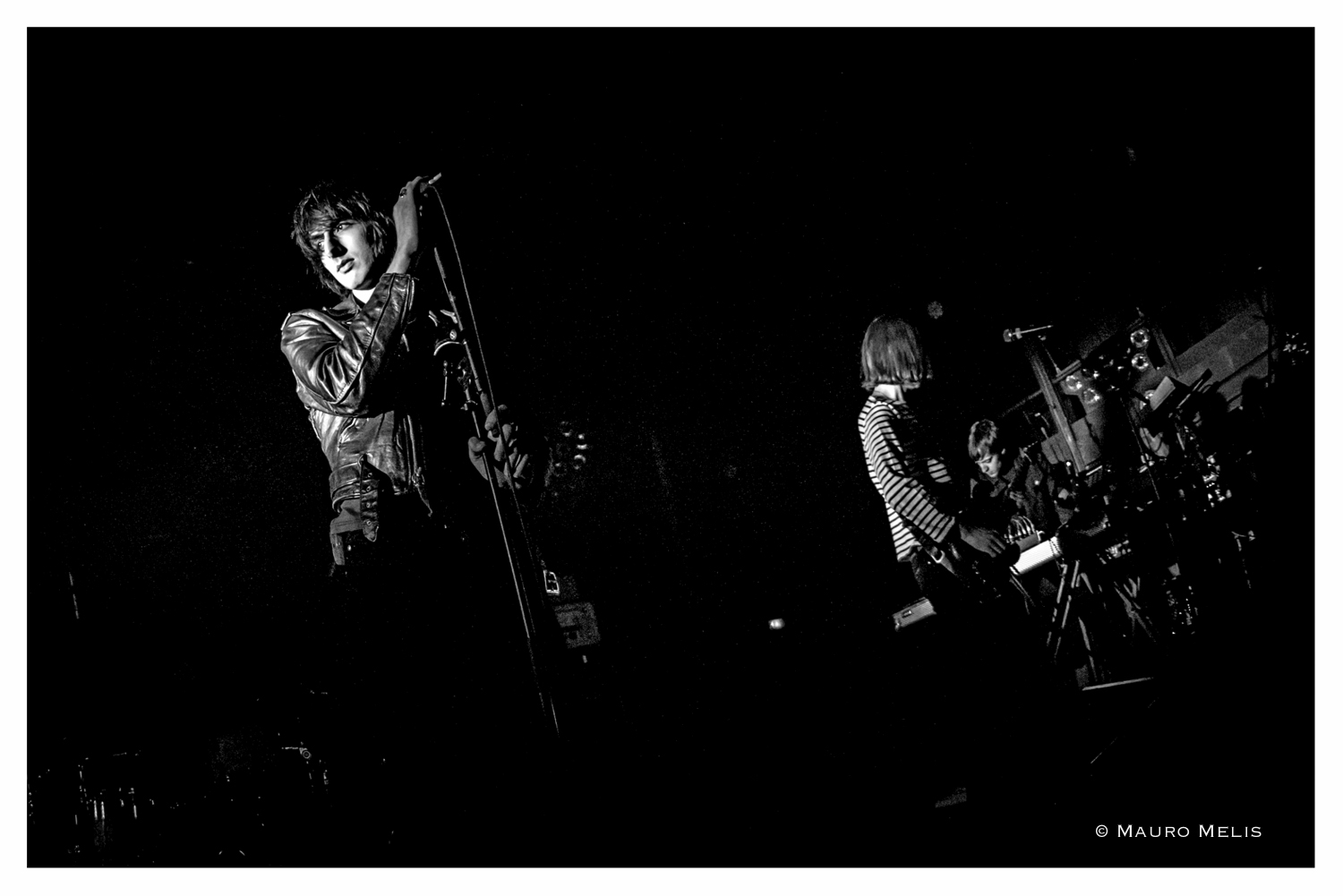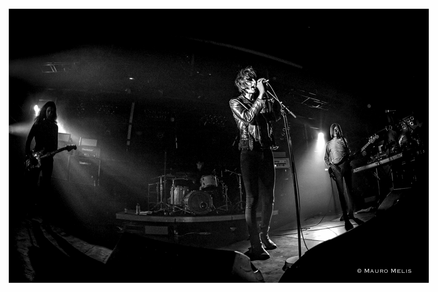 21h30 (et quelques) : Joshua Hayward, Tom Cowan, Rhys Webb, Coffin Joe et enfin Faris Badwan font leur entrée sur scène sous des lumières rappelant fortement la palette de couleurs de leur dernier (et génial) album Luminous. Ils commencent leur set sur la superbement enivrante "Sea within a sea". Faris et son charisme imprenable sort un timide "Bonsoir" sous les acclamations les plus vives d'un public agité. Le groupe enchaîne avec les perles "Who can say" puis "Scarlet fields", toutes deux issues de Primary Colours (incontestablement mon album préféré). Sous des éclairages sombrement étincelants, "In and out of sight" fait son petit effet! Même constat pour les suivantes "Endless blue", "I see you" et "Mirror's image". D'ores et déjà amplement apprécié sur CD, entendre "Falling star" en live nous confirme qu'il s'agit d'une bien belle chanson. L'entraînante "So now you know" séduit tout autant que les précédentes et nous prouve que Luminous n'a pas dissous la fanbase (coucou les Inrocks^^).